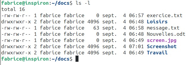 drwxrwxr-x 2 fabrice fabrice 4096 sept. 4 06:48 LoisirsLisons cette ligne de gauche à droite :
