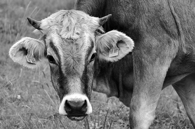 Voici, à gauche, l’image 1 et, à droite, l’image cryptée (la pauvre vache est perdue dans la ville !).