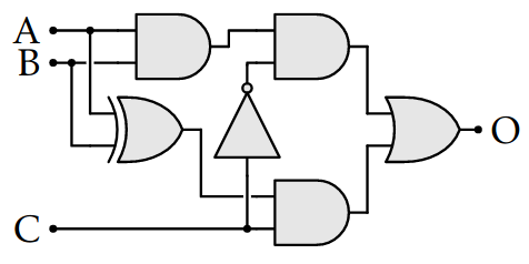 Faire un circuit équivalent à une porte XOR à l’aide de portes ET, OU et NON.