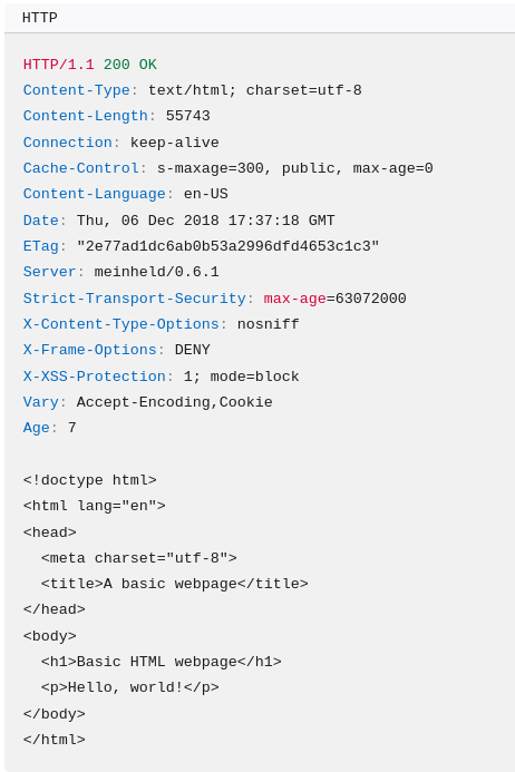 Dans l’exemple du chargement de la page mapageweb.html suivante, hébergée en ligne à cette adresse, voici la réponse du serveur :