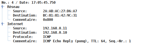 En suivant le même principe, la machine 192.168.1.1 pourra envoyer son pong.