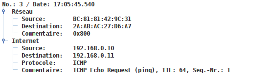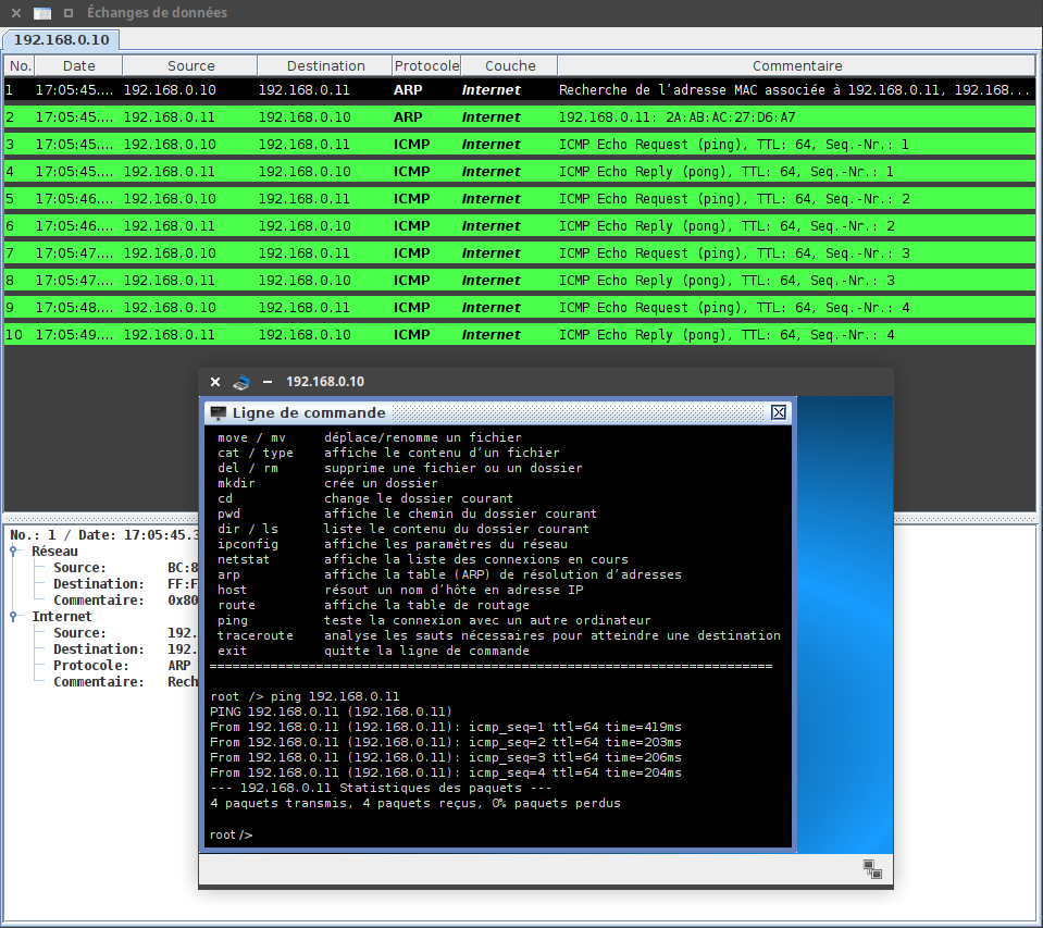 192.168.0.10vers192.168.0.11et observons les données échangées :