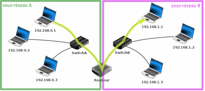 Dans notre cas, l’adresse IP 192.168.1.1de destination lui est accessible : elle fait partie de son sous-réseau B.